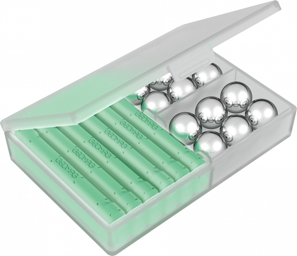 - 20 świecących magnetycznych prętów, 20 stalowych kulek, 2 stabilne podstawy (kwadrat i pięciokąt) w czarnym kolorze