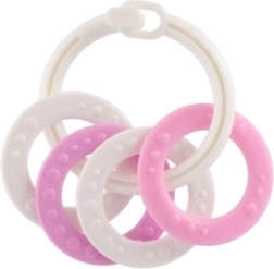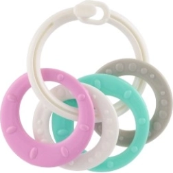 Tekstury na powierzchni kółek zapewniają dodatkową stymulację dla dziąseł dzieci podczas ząbkowania.