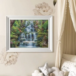 Scena z bujną zielenią i spadającą wodą pomaga w osiągnięciu koncentracji i wewnętrznego spokoju podczas układania.