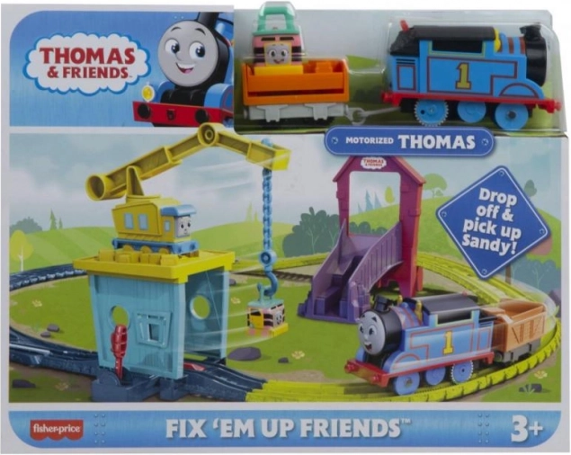 Ten kolorowy, 18‑elementowy zestaw na baterie oferuje dzieciom pełną akcji obsługę załadunku i rozładunku przy użyciu dźwigu, jazdę po okrągłej trasie oraz zabawne zjeżdżanie pojazdu Sandy po zjeżdżalni. Zmotoryzowany Tomek ciągnie wagon towarowy, a obrotowe ramię dźwigu Carly z hakiem łatwo chwyta i przenosi ładunek.
