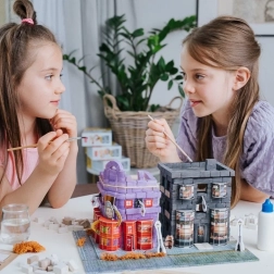 Buduj krok po kroku: przyklejaj cegiełkę do cegiełki, przycinaj i dopasowuj listewki, a następnie dodaj tematyczne dodatki, by uzyskać autentyczną atmosferę Ulicy Pokątnej. Dzięki klejowi rozpuszczalnemu w wodzie model jest wielokrotnego użytku – po prostu namocz, rozłóż i buduj ponownie. Zestaw można łączyć z innymi kompletami BRICK TRICK HARRY POTTER, aby stworzyć rozbudowany świat czarów i magii, w tym zamek Hogwart.