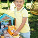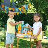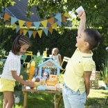 Bogaty zestaw 38 akcesoriów obejmuje wytwornicę lodów, rożki i gałki, łyżkę do lodów, owocowy szaszłyk, posypki, naczynia, sztućce i kasę. Dzięki kompaktowym wymiarom stragan świetnie sprawdzi się w ogrodzie, parku i na plaży – idealny dla małych gospodarzy letnich przyjęć.