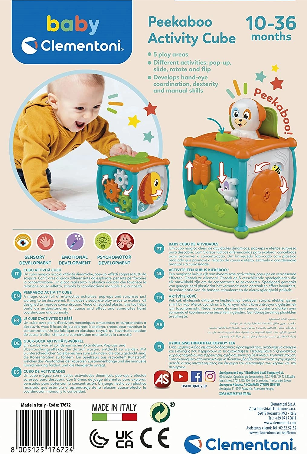 Kolorowa i dynamiczna kostka Clementoni z linii Baby pełna zabawnych aktywności i zaskakujących efektów. Idealna do rozwoju zmysłu dotyku i zdolności motorycznych dzięki wyskakującym zwierzątkom i łatwemu chwytaniu.