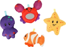 - Zabawki w formie rybki, ośmiornicy, gwiazdki oraz pudełeczka z lusterkiem