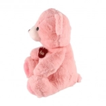 Różowy pluszowy miś wykonany jest z miękkiego materiału, idealnego do przytulania i dającego poczucie bezpieczeństwa.