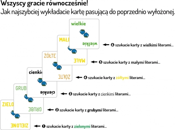 Ta dynamiczna gra imprezowa czerpie z psychologicznego efektu Stroopa, który celowo myli nasze postrzeganie – i właśnie na tym opiera się zabawa oraz wyzwanie. Zasady są proste, ale mózg pracuje na wysokich obrotach, ponieważ musicie reagować szybko i poprawnie, nawet gdy karty i kolory „udają” coś innego.