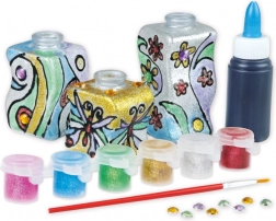 - 3 wazony, 6 brokatowych farb, pędzelek, ozdobne kamyki, masa plastyczna