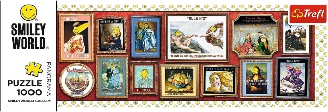 Panoramiczne puzzle z wesołym motywem SMILEY Galerie zapewnią godziny spokojnej rozrywki dla dorosłych i starszych dzieci. Format panorama po ułożeniu doskonale wygląda we wnętrzu, a dzięki wysokiej jakości nadrukowi wszystkie detale pięknie się wyróżniają.
