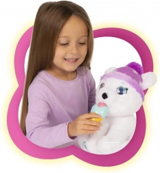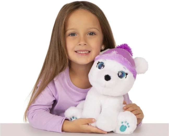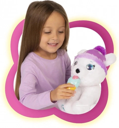 Poluś to interaktywny niedźwiedź polarny, który jest bardzo miły. Został wykonany z miękkiego, przyjemnego pluszu i ma urocze, kryształowe oczy z brokatem. Wydaje 10 dźwięków! Po zjedzeniu lodów z zestawu zaczyna mu się robić niedobrze i trzęsie się z zimna. Zadbaj o niego i głaszcz go, a od razu poczuje się lepiej!