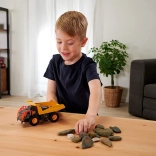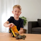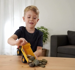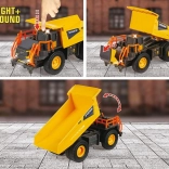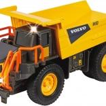 Licencjonowana wywrotka VOLVO bez napędu, ze światłami i efektami dźwiękowymi. Kabina wykonana z metalu. Miękkie gumowe opony z łatwością pokonują wymagający teren na placu budowy. Ruchome elementy: maska i wywrotka. Długość: 20 cm.