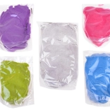 Zawiera 5 kolorów: różowy, fioletowy, zielony, niebieski oraz mniej przetworzony, naturalny. Dzieci mogą tworzyć różne kształty za pomocą 4 foremek w kształcie muszli, kaczuszki, gwiazdy i żółwia. Świetna zabawa dla każdego małego twórcy!