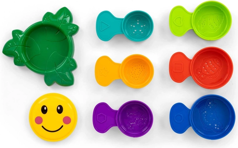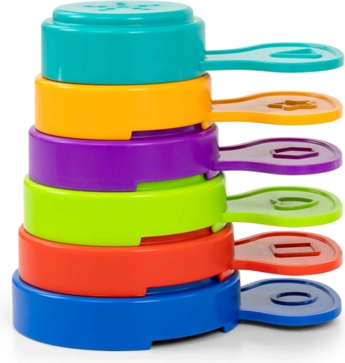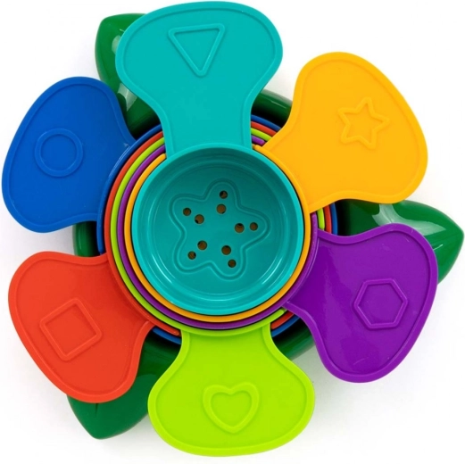 Składana zabawka do kąpieli Flower od Milly Mally. 6 kolorowych kubeczków do układania, budowania wieży, a także jako foremki do piasku. Każdy z nich ma otwory w dnie, dzięki czemu można przelewać przez nie wodę, przesiewać piasek do zabawy, na placu zabaw lub na plaży. Kolory i wypukłe kształty na kubeczkach pomagają w nauce.
