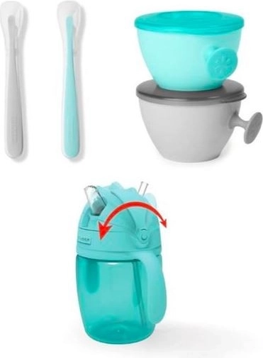 - Zawiera dwie miski z pokrywkami, dwie łyżeczki i kubek ze słomką
