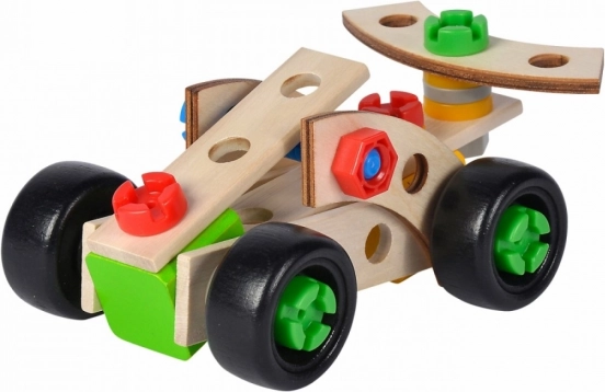 - 35 elementów: klocki, listwy, koła, śruby i nakrętki