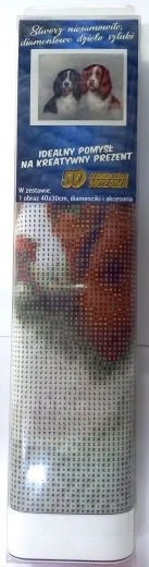 - Płótno z nadrukowanym obrazem, aplikator (piórko), tacka na kryształki, wosk, zestaw kolorowych kryształków