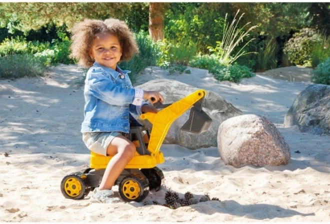 Wytrzymała koparka czuje się jak w domu na piaskownicy, żwirze i w ogrodzie. Wspiera rozwój motoryki, cierpliwości oraz gry zespołowej.