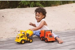 Aktywna betoniarka LENA eco zapewnia dzieciom realistyczną zabawę na budowie z naciskiem na zrównoważony rozwój. Dzięki zastosowaniu materiałów z recyklingu i domieszki drewna zabawka jest przyjazna dla natury, a zarazem wytrzymała i gotowa na intensywne użytkowanie. W pełni mechaniczne sterowanie bez baterii wspiera naturalną ciekawość i rozwój małej motoryki.