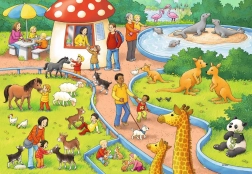 Puzzle Dzień w Zoo 2x24 od Ravensburger oferują dwa zabawne obrazki po 24 elementy, które przedstawiają dzieci i zwierzęta w zoo. Świetne dla dzieci od 4 lat.
