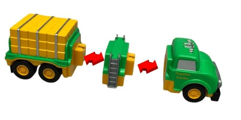 Poszczególne elementy szybko i pewnie łączą się dzięki magnesom. Dzieci łatwo przebudują traktor, kombajn i ciężarówkę według własnej wyobraźni.