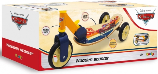 Dziecięca trójkołowa hulajnoga SMOBY CARS z drewnianym podestem, regulowaną kierownicą i antypоślizgowymi kołami. Stabilna, bezpieczna i łatwa do złożenia.