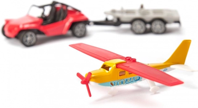 W zestawie znajduje się srebrna przyczepa ze specjalnym uchwytem na samolot, co umożliwia łatwy i bezpieczny transport. Każdy detal został starannie zaprojektowany, by zapewnić maksimum zabawy i przygody.