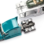 Model nadaje się zarówno do zabawy, jak i do ekspozycji, a jego wyrazisty design w odcieniu Miami Blue z chromowanymi elementami jest naprawdę atrakcyjny. Dzięki trójosiowemu podwoziu i zintegrowanemu standardowemu zaczepowi model można łączyć ze wszystkimi przyczepami z serii Siku Super.
