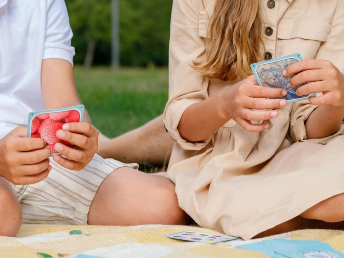 Kompaktowe opakowanie i wytrzymałe karty z zaokrąglonymi rogami są świetne na wycieczki, wakacje i szybką rozgrywkę na świeżym powietrzu z przyjaciółmi.