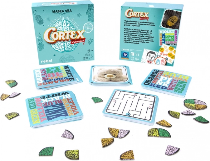 REBEL CORTEX to dynamiczna gra karciana pełna sprytnych zadań, w której liczą się szybkie reakcje i bystre myślenie. Każda karta przynosi nowe wyzwanie – od zagadek wizualnych, przez zadania pamięciowe, po łamigłówki logiczne i sensoryczne zadania z wypukłymi kartami. Za poprawne rozwiązania zdobywasz fragmenty mózgu; kto pierwszy ułoży całość, wygrywa.