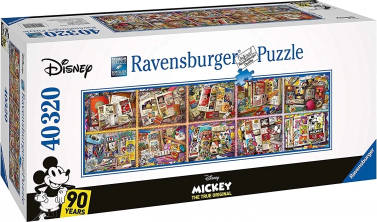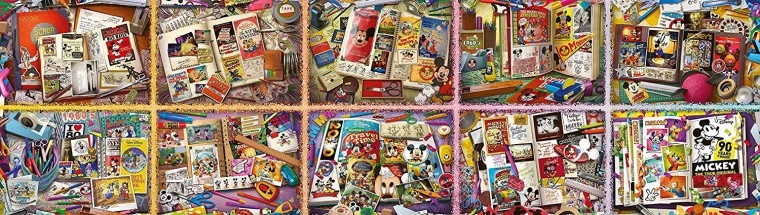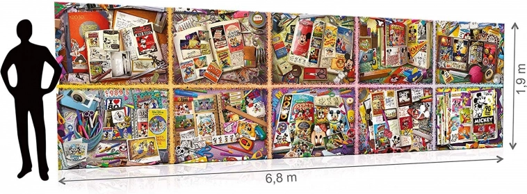 Monumentalne puzzle dla miłośników DISNEY: 40320 elementów z motywem MICKEY MOUSE na przestrzeni lat. Po ułożeniu tworzą ogromny panoramat o wymiarach 680 × 190 cm, idealny dla wymagających układaczy i kolekcjonerów.