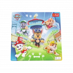 Drewniana układanka z licencją PSI PATROL zapewnia bezpieczną i angażującą formę nauki. Dzięki pięciu wyjmowanym elementom z drewnianym gałkowym uchwytem dzieciom łatwo trzymać puzzle i odkładać je z powrotem na podkładkę. Czarno-biała grafika w zagłębieniach odpowiada motywom na elementach, co pomaga znaleźć właściwe miejsce.