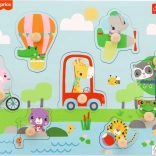 Drewniane puzzle wkładane Fisher-Price zwierzątka, 8 elementów