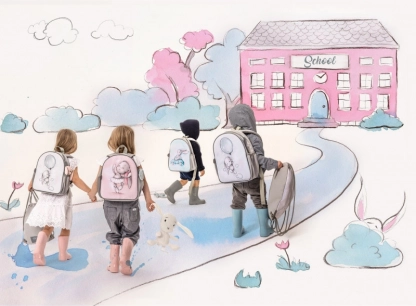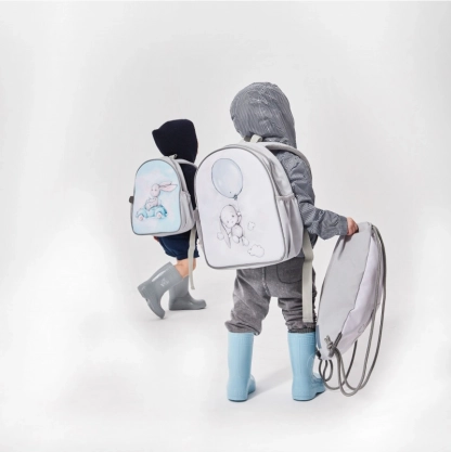 - Praktyczność: przejrzysta główna komora, kieszeń na pojemnik, kieszenie na butelkę, metryczka na imię.