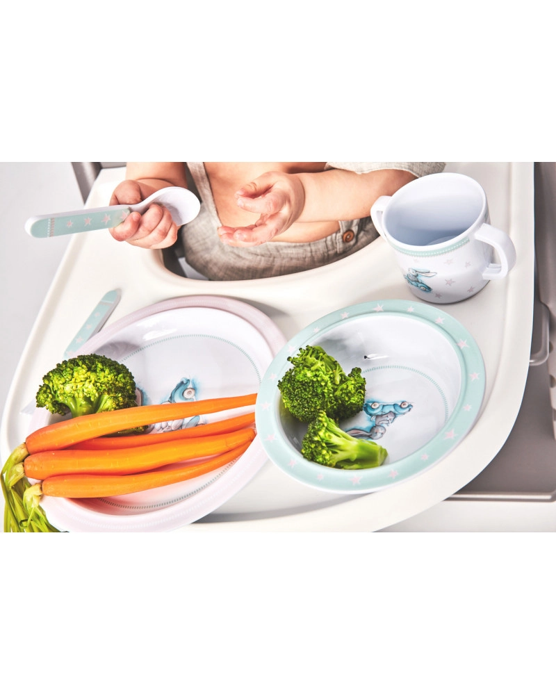 - Wykończenie antypoślizgowe: Zapewnia stabilność na stole, idealne dla maluchów uczących się jeść samodzielnie.