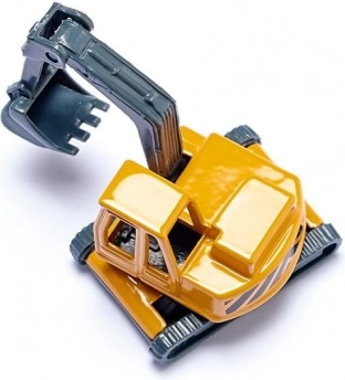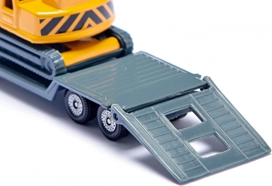 Metalowe i plastikowe elementy, gumowe opony oraz tylne zabezpieczenie zapewniają bezpieczny transport maszyny. Koparka, która jest częścią zestawu, to wyjątkowy model odzwierciedlający rzeczywisty wygląd z ruchomymi częściami. To atrakcyjny model dla miłośników pojazdów budowlanych w każdym wieku.