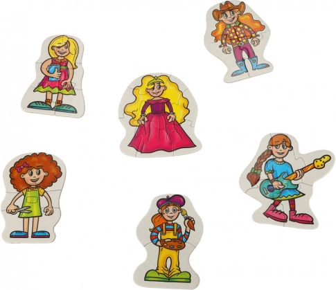 Zestaw zawiera łącznie 27 elementów podzielonych na 6 obrazków o dziewczęcej tematyce. Dzięki grubości 3 mm elementy wygodnie trzyma się w małych rączkach i dobrze do siebie pasują. Świetny pomysł na prezent oraz jako aktywność do wspólnej zabawy z rodzicami.