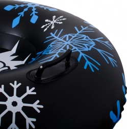 Nadmuchiwany ślizg w kształcie koła ze stylowym zimowym nadrukiem płatków śniegu to świetny wybór dla małych i dużych miłośników śniegu. Solidne boczne uchwyty dodają pewności i kontroli podczas jazdy, a wytrzymałe PVC i przemyślany kształt zapewniają szybki ślizg i mnóstwo zabawy.