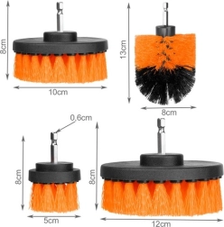 Uniwersalny zestaw szczotek do wiertarki i wkrętarki akumulatorowej do szybkiego i skutecznego czyszczenia. Nylonowe włókna o średniej twardości poradzą sobie z zabrudzeniami w łazience i w warsztacie, nie rysując armatury. Dzięki różnym kształtom i rozmiarom łatwo dobierzesz właściwą szczotkę do danego zadania. Uniwersalne mocowanie, średniotwarde nylonowe włókna, 4 sztuki w zestawie, odpowiednie do płytek, fug, wanien i felg samochodowych.