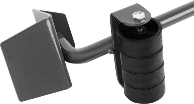 Solidna stalowa dźwignia z ergonomicznym gumowym uchwytem zapewnia pewny chwyt i bezpieczne podniesienie mebla bez ryzyka wyślizgnięcia.