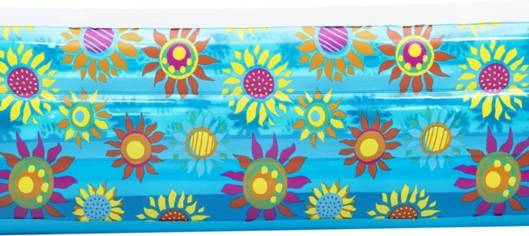 Dmuchany basen zdobi żywy kwiatowy wzór, który zwiększa jego atrakcyjność i zachęca do zabawy oraz relaksu.