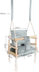 Dzięki minimalistycznemu wzornictwu i wysokiej jakości materiałom doskonale dopełni nowoczesne wnętrze. Montaż jest prosty, liny o średnicy 10 mm gwarantują niezawodne zawieszenie. Huśtawka jest przeznaczona dla dzieci, które samodzielnie siedzą, o nośności do 25 kg.