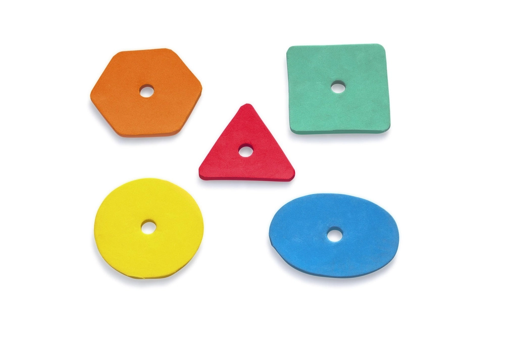 Łuk ze specjalnymi otworami i 5 kolorowymi piankowymi kształtami uczy dzieci rozpoznawania kolorów i kształtów, a także poprawia motorykę małą i koordynację.