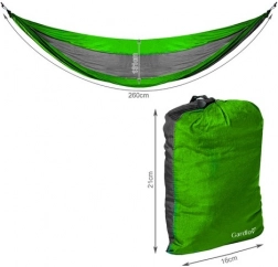 Hamak jest wyposażony w praktyczne etui, które ułatwia przenoszenie - złożony hamak zajmuje mało miejsca i zmieści się nawet w małym plecaku. Po rozłożeniu etui może służyć jako kieszonka na napoje, telefon lub gazety.