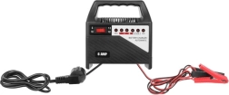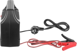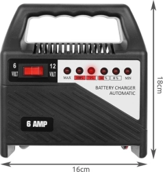 Praktyczny uchwyt, kompaktowe wymiary i nisko masa ułatwiają przechowywanie i przenoszenie. Przełącznikiem wybierzesz właściwe napięcie (6 V / 12 V), a solidne zaciski zapewnią pewny kontakt z biegunami akumulatora.