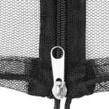 Dolny lem wyposażono w linkę ściągającą z obciążeniem, która utrzymuje siatkę stabilnie na miejscu nawet przy wietrze. Centralny zamek zapewnia wygodne wejście i wyjście, dlatego świetnie sprawdza się do codziennego użytku w ogrodzie, na tarasie i przy basenie. Dzięki szybkiej instalacji oraz łatwemu składaniu moskitierę bez trudu przechowasz.