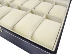 Poszczególne przegródki mają specjalne wkładki, które można dostosować do potrzeb lub całkowicie usunąć. Dzięki temu organizer dopasowuje się do różnych rodzajów biżuterii.