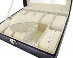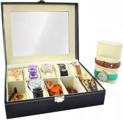 Organizer na zegarki i biżuterię to praktyczny i stylowy dodatek dla każdego, kto chce mieć swoje kosztowności bezpiecznie i przejrzyście uporządkowane. Wykonany z dbałością o szczegóły, oferuje piękny wygląd i świetną funkcjonalność.
