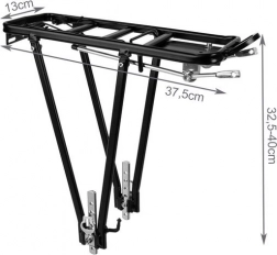 Trwałość i stabilność: Bagażnik wykonany jest z wytrzymałego aluminium, co gwarantuje długą żywotność i stabilność podczas przewozu przedmiotów. Maksymalna nośność tego modelu wynosi aż 35 kg, co umożliwia wygodny transport w pełni załadowanych sakw rowerowych.