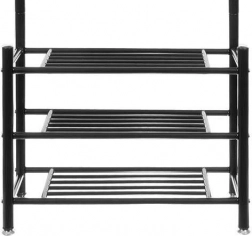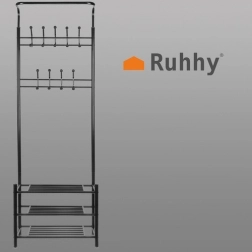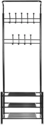 Utrzymuj przedpokój i sypialnię doskonale uporządkowane dzięki temu wielofunkcyjnemu wieszakowi na ubrania z półkami. Oferuje 3 przestronne półki na obuwie, 18 haczyków na płaszcze i akcesoria oraz stabilną metalową konstrukcję, która oszczędza miejsce i niezawodnie wytrzymuje codzienne obciążenia.