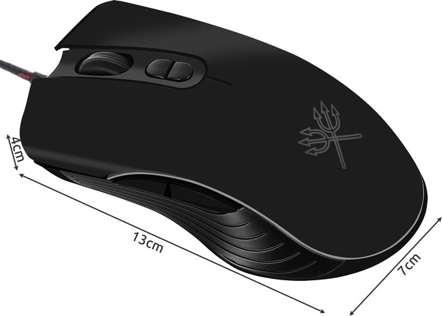 SPECYFIKACJA - kolor: czarny; oprogramowanie: Plug & Play; podświetlenie myszy: tak; sensor: optyczny; ślizgacze: teflon; zmienne podświetlenie: tak; profil myszy: praworęczna; wykończenie powierzchni: mat - ABS; klawisze programowalne: tak; liczba klawiszy: 7; rozdzielczość: 1200-2400-4800-7200 DPI; żywotność: 5 milionów kliknięć; port: USB 2.0; długość kabla: 135 cm; kabel w oplocie: tak; napięcie systemowe: DC 5V / 100 mA; wymagania systemowe: XP / VISTA / 7/8/10 / Vista / Mac OS lub nowszy; wymiary: 13/7/4 cm; waga: 0,124 kg; waga w opakowaniu: 0,162 kg.