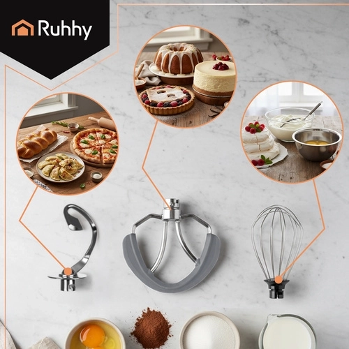 Wydajny robot kuchenny RUHHY z planetarnym mieszaniem i pojemną miską ze stali nierdzewnej 6,2 l poradzi sobie z ubijaniem, wyrabianiem i mieszaniem gęstych ciast oraz lekkich kremów. Dzięki silnikowi 1500 W, 6 prędkościom i funkcji PULSE zapewnia płynną kontrolę nad przygotowaniem. Stabilna konstrukcja z metalową przekładnią, podświetleniem LED pokrętła i bogatym wyposażeniem ułatwia codzienne pieczenie i gotowanie.